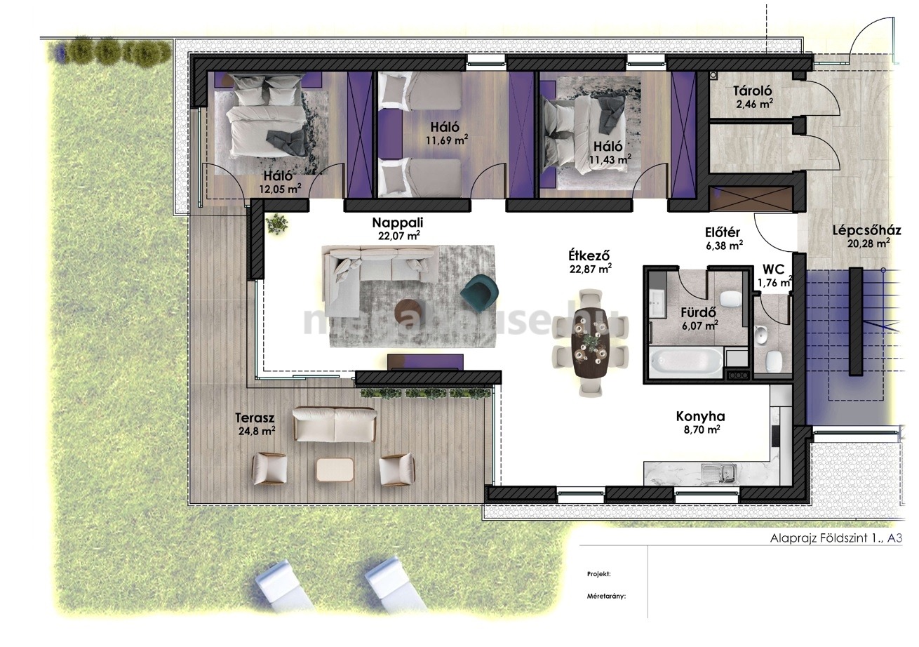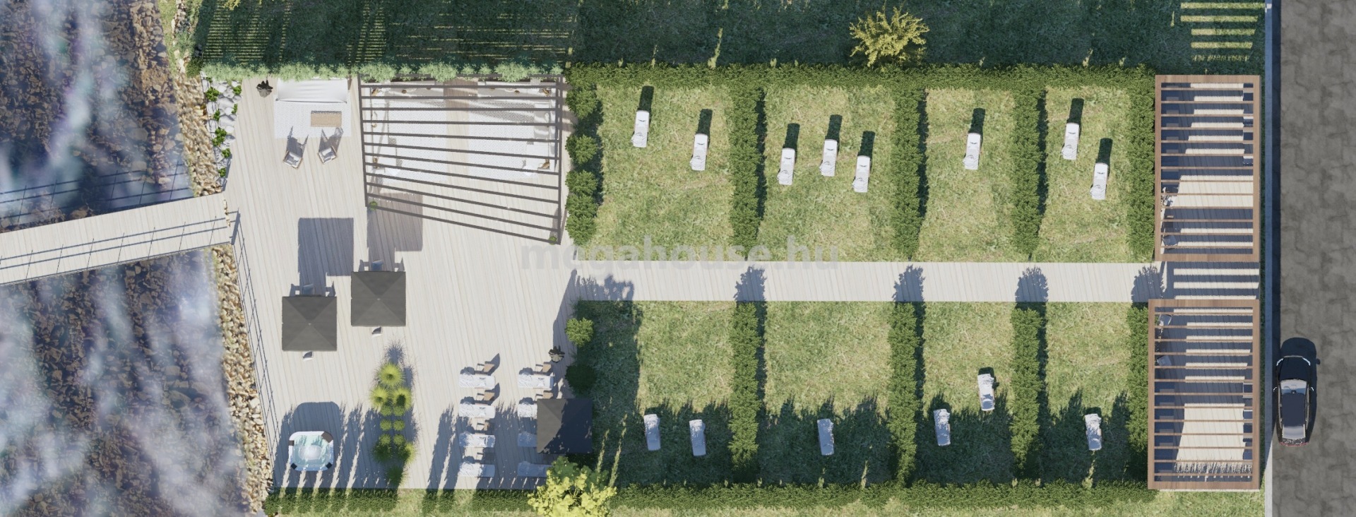Továbbá az egységes motoros zsaluzást, 1 db felszíni gépkocsibeállót és tárolót a vételár szintén tartalmazza.